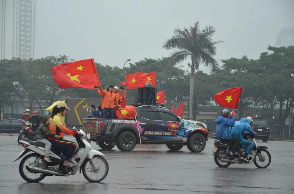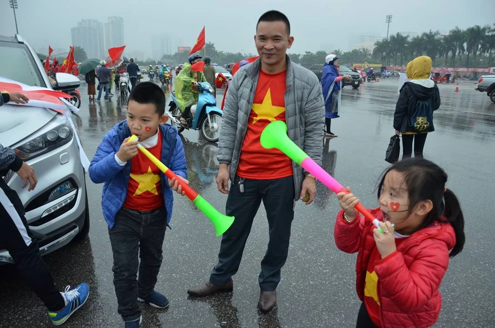 Sáng nay Hà Nội có mưa, nhiều nơi mưa nặng hạt nhưng thời tiết không hề ảnh hưởng đến sức nóng của trận đấu.