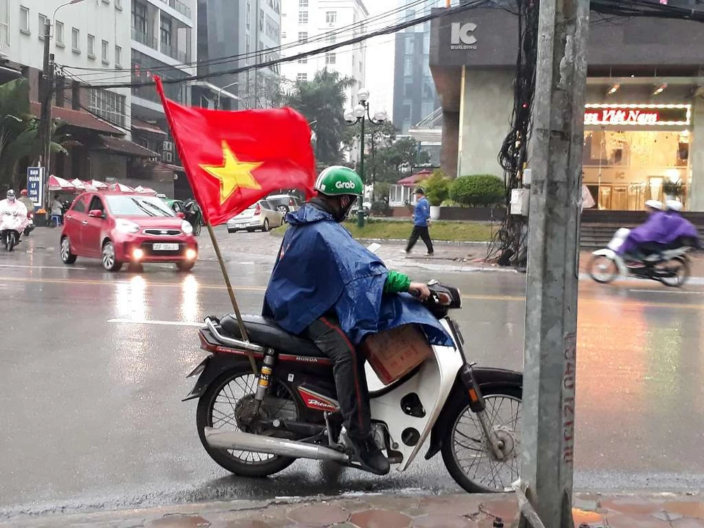 Một tài xế Grab cắm lá cờ Tổ quốc trên xe của mình.