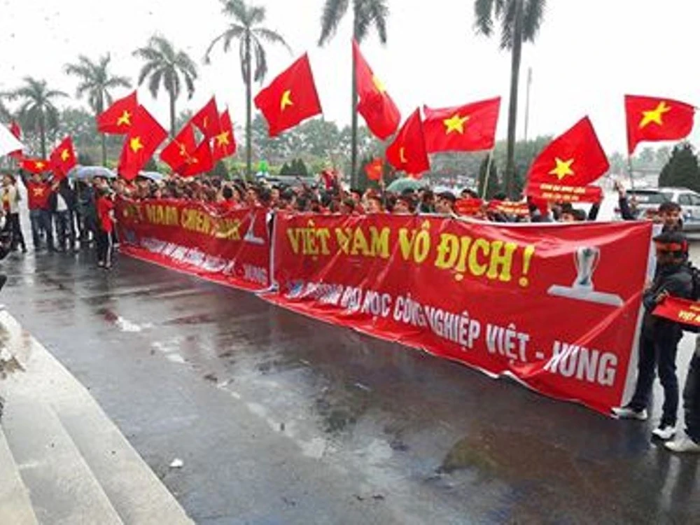 Mặc dù theo dự kiến, 15 giờ chiều nay trận chung kết của đội tuyển U-23 Việt Nam mới diễn ra nhưng ngay từ buổi sáng hàng trăm người hâm mộ đã có mặt tại SVĐ Mỹ Đình.