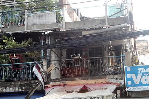 Tầng hai của căn nhà bị cháy rụi. Ảnh: L.THOA