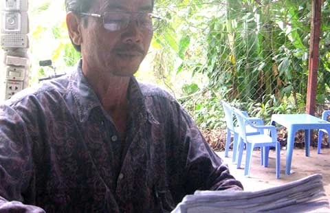 Ông Bùi Văn Lý với các văn bản khiếu nại việc thi hành án chậm. Ảnh: G.TUỆ