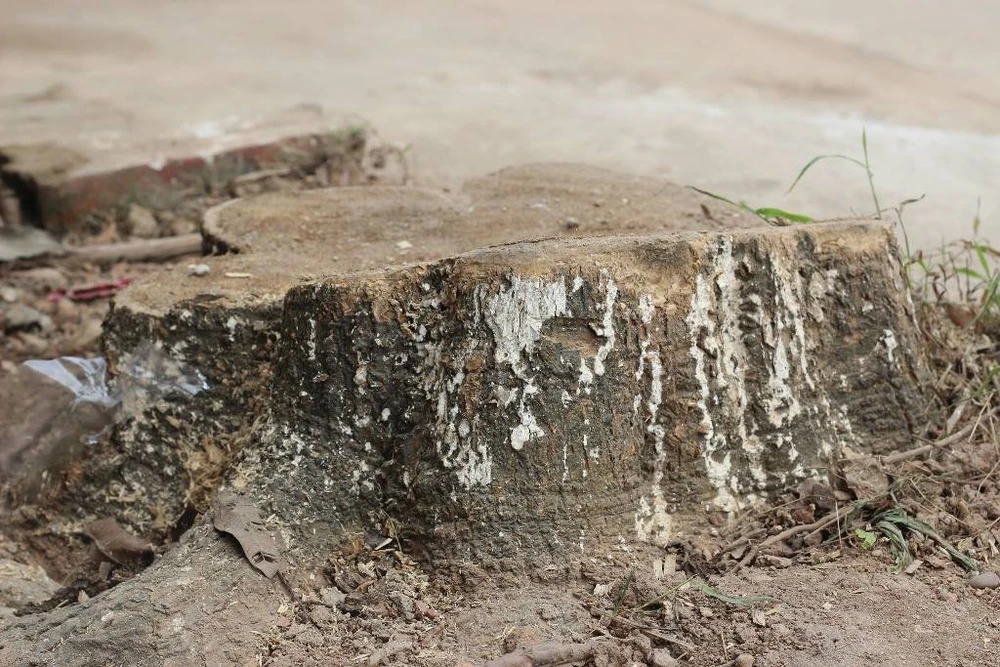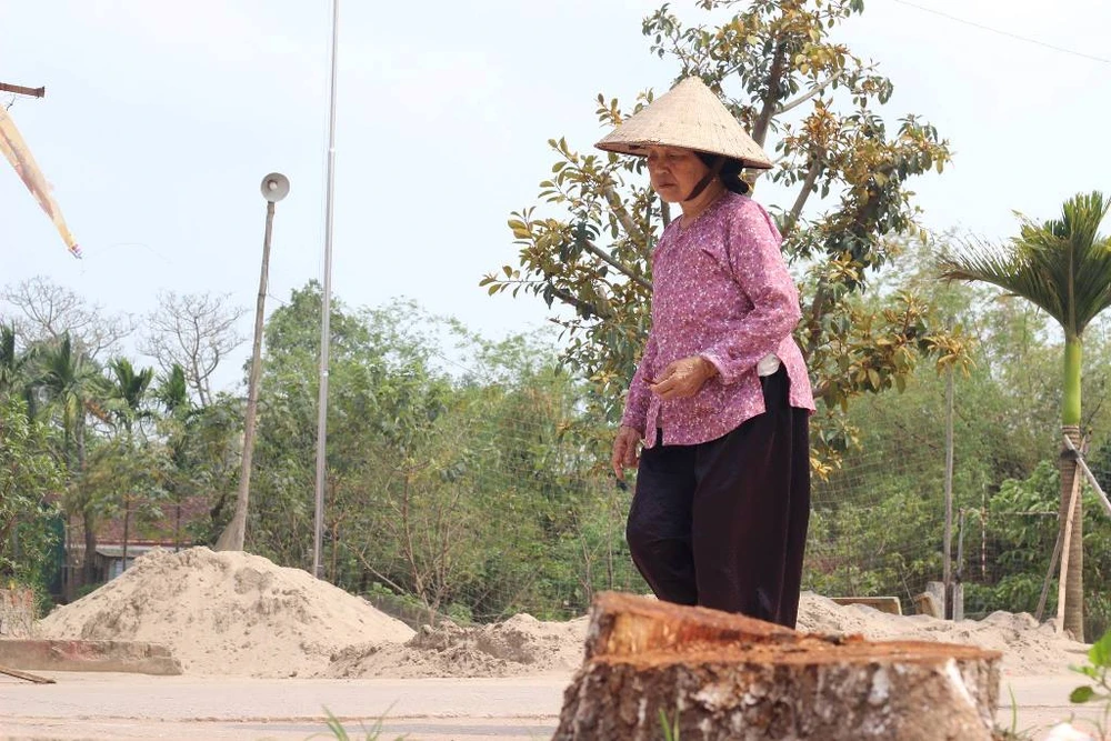 Đối với phần gốc cây, theo chủ trương, sau này xã sẽ múc bỏ rồi và kết hợp với xã hội hóa giao thông nông thôn sẽ đổ nốt phần đường còn lại, sau đó quy hoạch trồng lại cây.