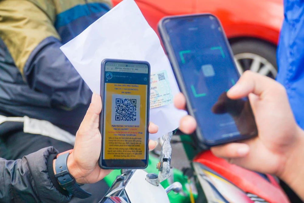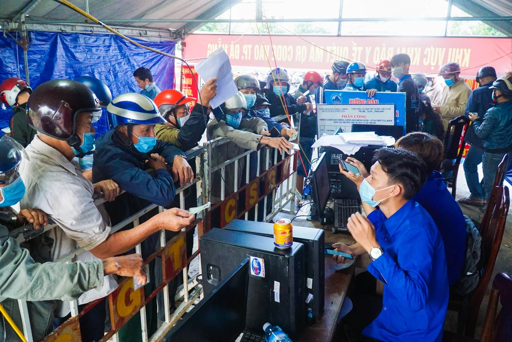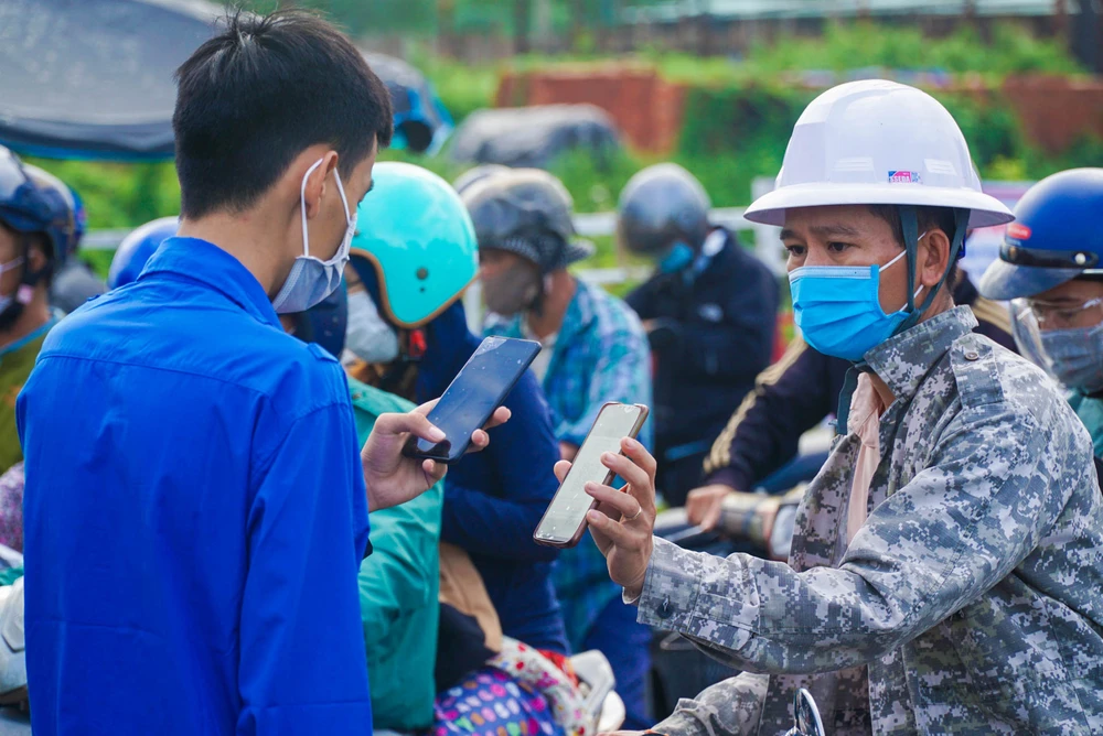 Mỗi người dân phải thực hiện khai báo y tế thông qua ứng dụng Danang Smart City mới được vào TP Đà Nẵng. Ảnh: BT