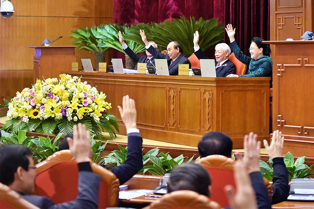 Ban chấp hành Trung ương đã thảo luận dân chủ, kỹ lưỡng, bỏ phiếu biểu quyết với sự nhất trí rất cao nhân sự tham gia Bộ Chính trị, Ban bí thư khóa XIII. Ảnh: VGP/ NHẬT BẮC