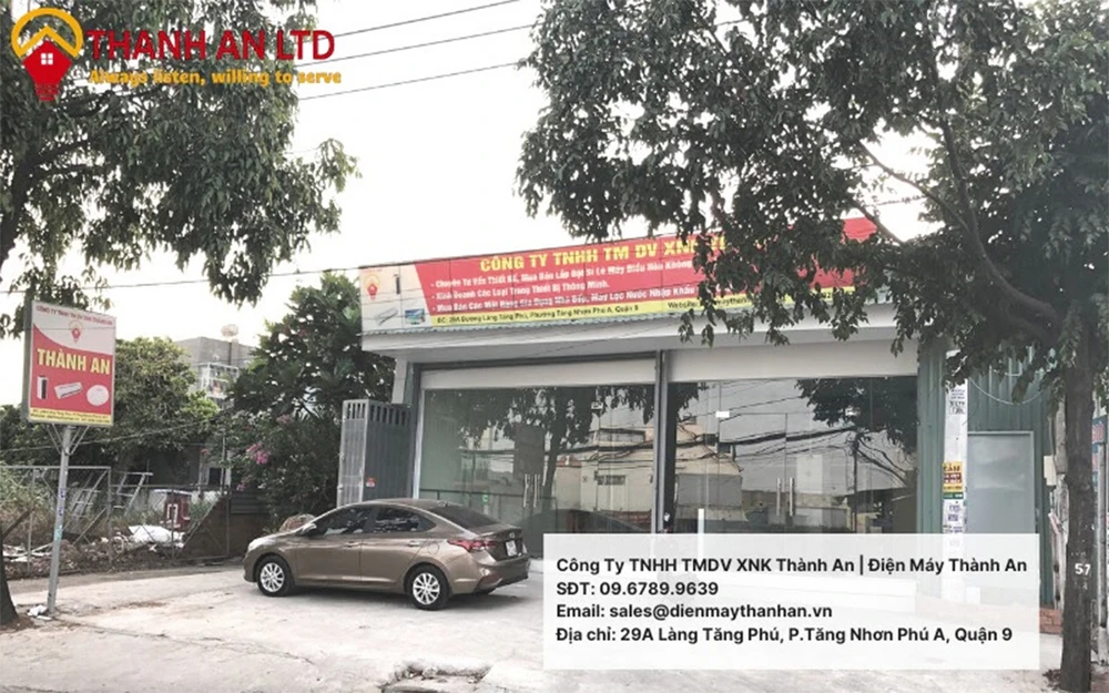 | Thông tin liên hệ: * Trụ sở: 29A Làng Tăng Phú, phường Tăng Nhơn Phú A, quận 9, TP.HCM * ĐT: 0967.899.639 (Mr. Diệp Thành Nhơn); * Email: sales@dienmaythanhan.vn; Website: https://dienmaythanhan.vn/ * Giấy phép kinh doanh: 0316122741. Ngày hoạt động: 31/01/2020 * Đại diện pháp luật: Diệp Ngọc Bảo An. |