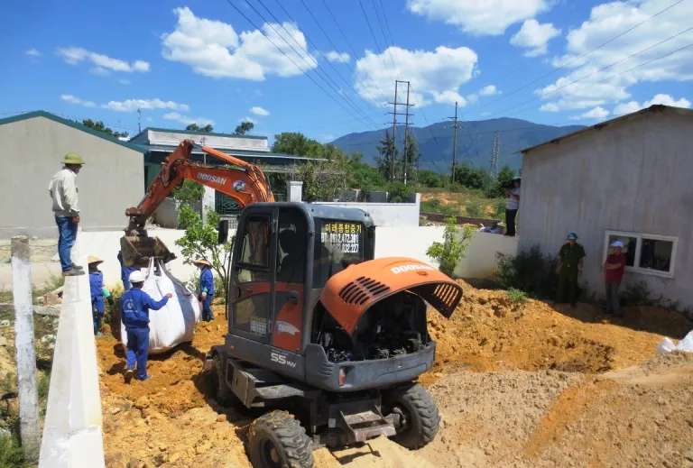 Chiều nay (16-7), Phòng Cảnh sát môi trường (PC49), Công an tỉnh Hà Tĩnh và UBND thị xã Kỳ Anh đã yêu cầu Công ty Môi trường Đô thị Kỳ Anh khai quật, cất bốc chất thải Formosa Hà Tĩnh chôn lấp trong Công viên Môi trường (phường Sông Trí, thị xã Kỳ Anh).