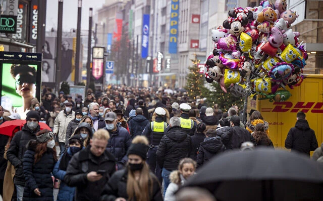 Người dân Đức đông đúc ở con đường trong thành phố Duesseldorf trước dịp lễ Giáng sinh. Ảnh: AP