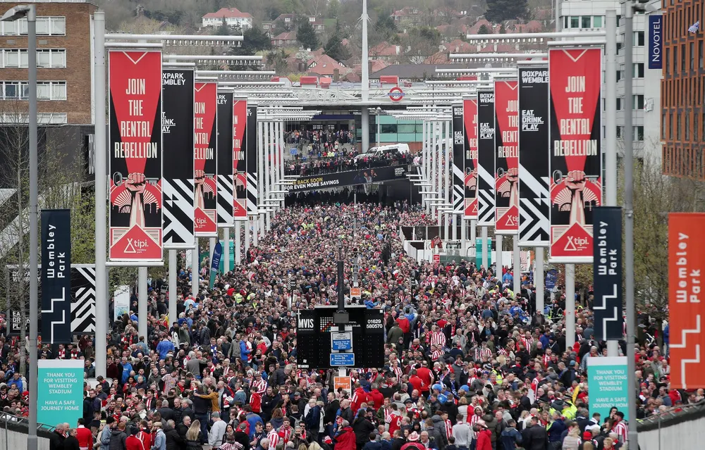 Rất đông khán giả sẽ tràn vào sân Wembley khiến người ta lo ngại lây lan dịch bệnh COVID-19. Ảnh: CGI.