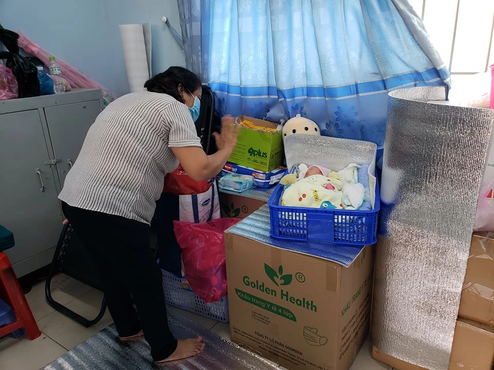 Trong khoảng thời gian có mặt tại đây, chúng tôi chứng kiến Vid rất ngoan, không khóc mà luôn hé môi cười. “Từ khi đón cháu bé về, ban đêm tôi cùng với chị Ngân ngủ lại phường để chăm sóc cháu, sáng ra bế cháu ra phơi nắng và tắm cho cháu, cháu ngoan và dễ lắm. Đồ dùng thì mạnh thường quân cũng tới cho và phường cũng mua thêm cho bé” - bà Hoà nói thêm.