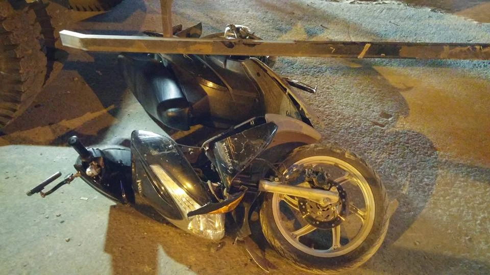 Chiếc xe máy của nạn nhân bị hư hỏng nặng.
