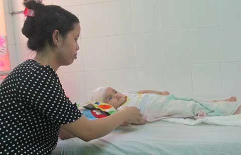 Bé Thư bị di chứng do chấn thương sọ não rất nặng nề và khả năng phục hồi thấp. Ảnh: TD