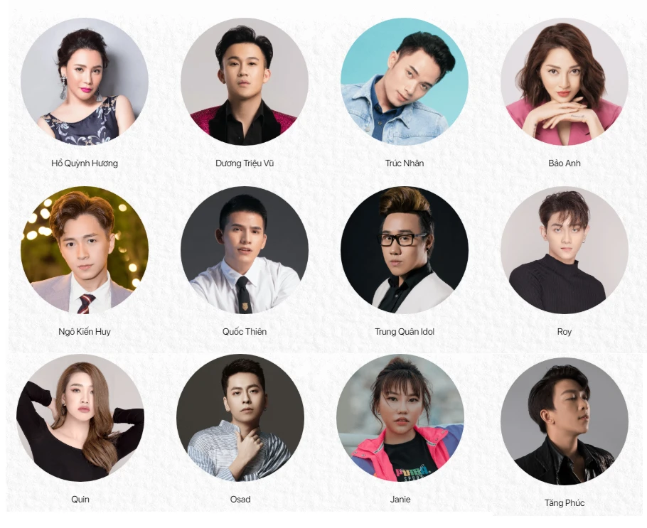 Thông tin các nghệ sĩ tham gia được cập nhật trên website chính thức của Đêm nhạc tri ân “Khi ta sống”, ghi nhận nhiều gương mặt hàng đầu của Vbiz. Ảnh: POPS