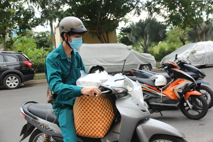Nhiều phần thức ăn hộp được đưa đến khu vực cổng chung cư. Ảnh: TS