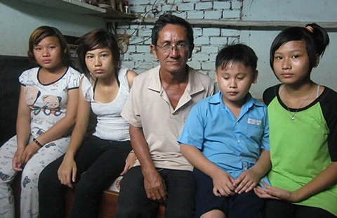 Ông Thành cùng các cháu (cháu Trúc ngồi thứ hai bên trái qua). Ảnh: NH