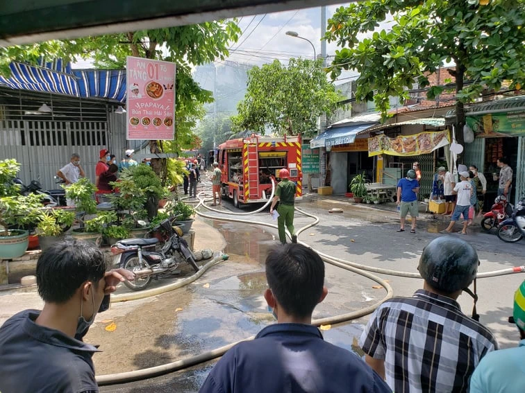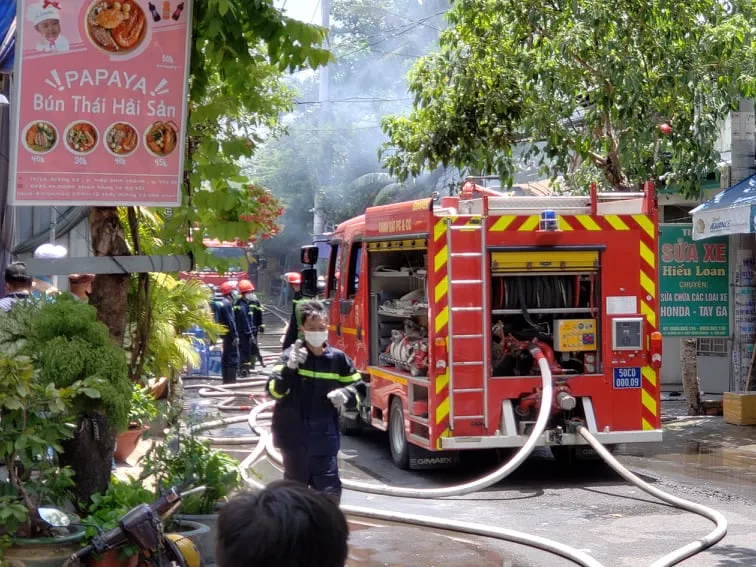 Đến hơn 12 giờ 30 ngày 10-7, lực lượng PCCC và các đơn vị liên quan Công an TP Thủ Đức, TP.HCM vẫn đang dập lửa và điều tra nguyên nhân vụ cháy khiến ba nhà liền kề bị thiêu rụi.