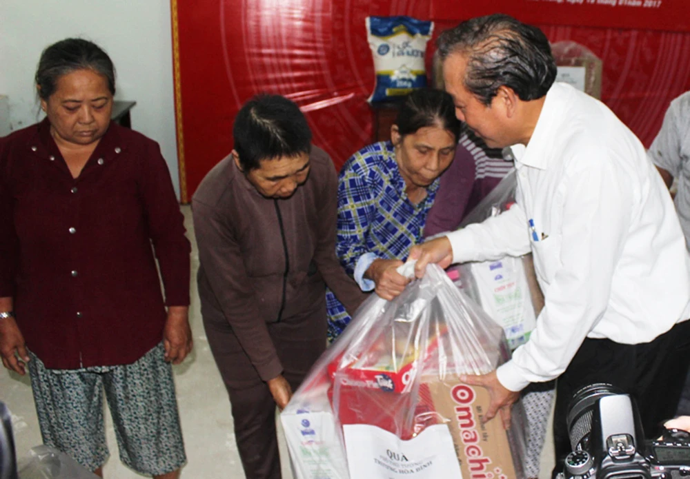 Phó Thủ tướng Trương Hòa Bình tặng quà, động viên các gia đình bị thiệt hại do vụ cháy ở Nha Trang. Ảnh: CTV