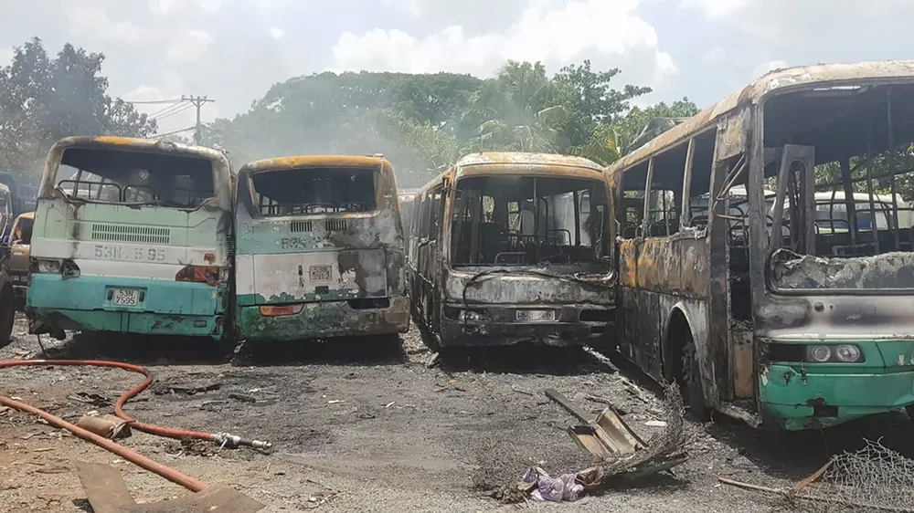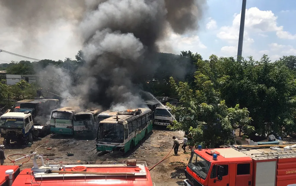 Hỏa hoạn không gây thương vong nhưng thiêu rụi 11 xe buýt và một xe tải.