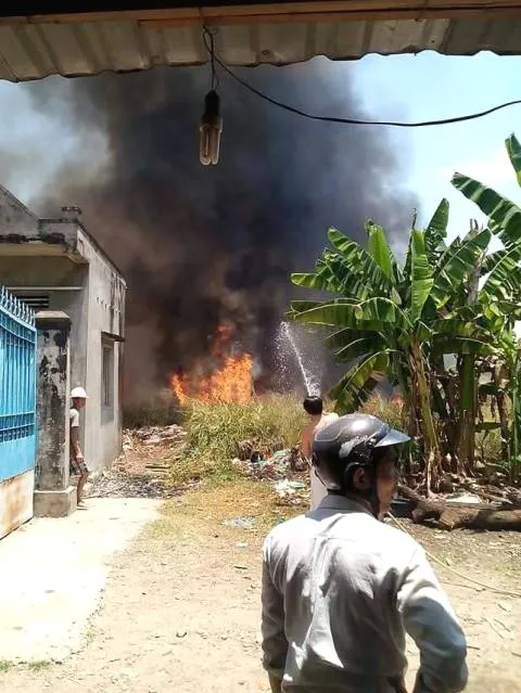 Hàng chục người dân hô hoán, xúm lại dập lửa, nhưng bất lực nhìn khói lửa ngập trời. Lửa cháy xém vào các vách tường nhà của nhiều hộ dân.