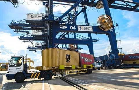 Bốc dỡ hàng hóa tại cảng Hiệp Phước, TP.HCM. Ảnh: HL