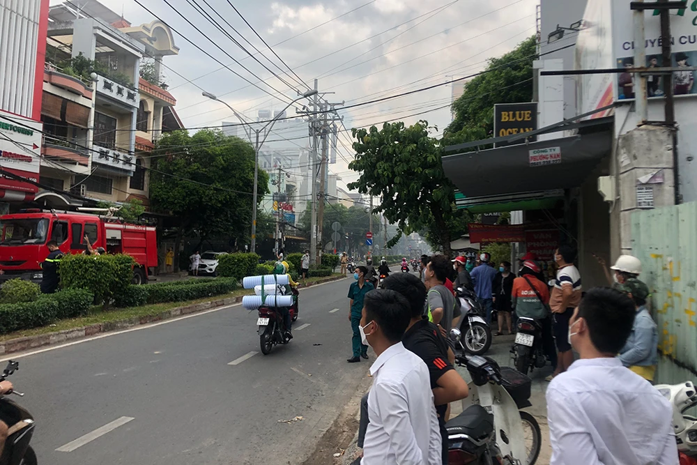 Cảnh sát PCCC quận Tân Phú điều động nhiều phương tiện tới hiện trường khống chế đám cháy. Sau khoảng 30 phút, khói lửa đã được khống chế.