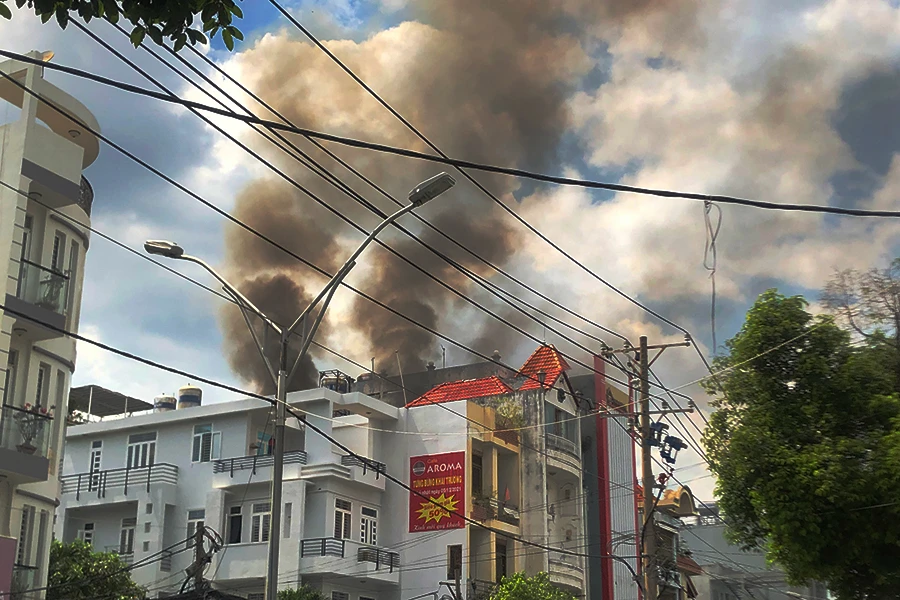 Thông tin ban đầu, khoảng 1 giờ 30 phút cùng ngày, khói lửa bùng lên từ căn nhà bốn tầng trên đường Nguyễn Cửu Đàm (phường Tân Sơn Nhì, quận Tân Phú).