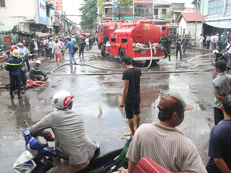 Cảnh sát PCCC quận 8, quận 1, quận 6 điều động nhiều phương tiện bao gồm cả xe thang cùng hàng trăm cán bộ chiến sĩ phối hợp với các đơn vị chức năng khác có mặt, khống chế hỏa hoạn. Điện được cắt, một đoạn đường Hải Thượng Lãn Ông qua khu vực được phong tỏa để đảm bảo an toàn.