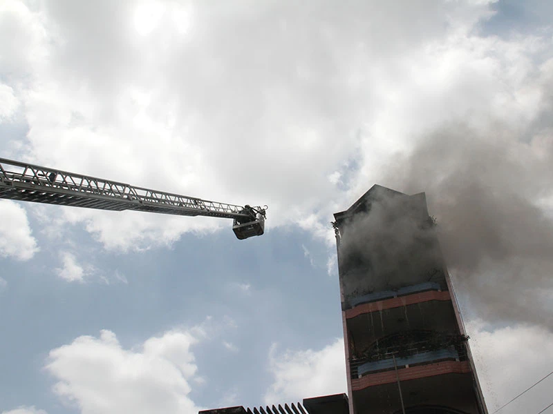 Xe thang được huy động để dập lửa.