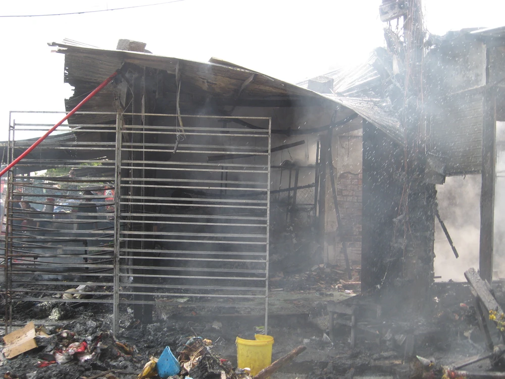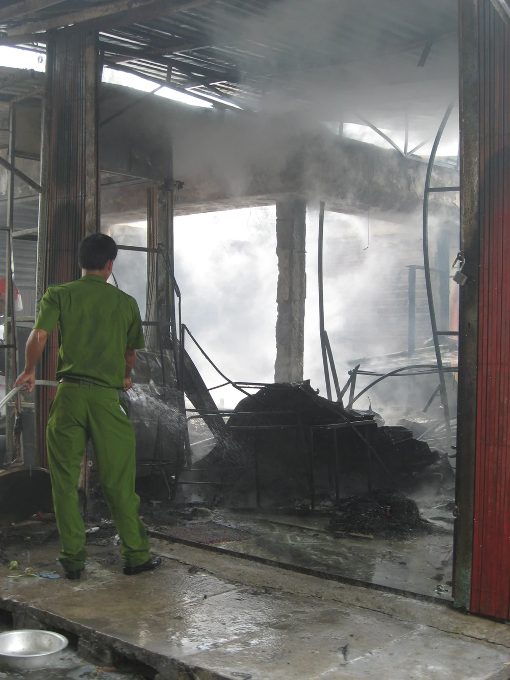 Hơn 20 phút sau đó đám cháy cơ bản được dập tắt. Hiện các lực lượng chữa cháy đang tiếp tục phun nước vào bên trong các gian hàng, các đống đổ nát đề phòng lửa còn âm ỉ sẽ bùng cháy trở lại. Ghi nhận tại hiện trường cho thấy, hiện đã có ít nhất hai gian hàng bị lửa thiêu rụi, nhiều gian hàng khác bị cháy, hư hỏng 60-80%.