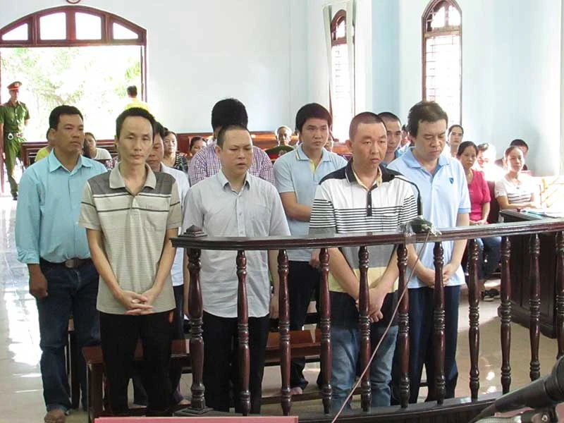 Các bị cáo trong vụ án thanh tra giao thông nhận tiền “bảo kê” ở TP Cần Thơ. Ảnh: C.ANH