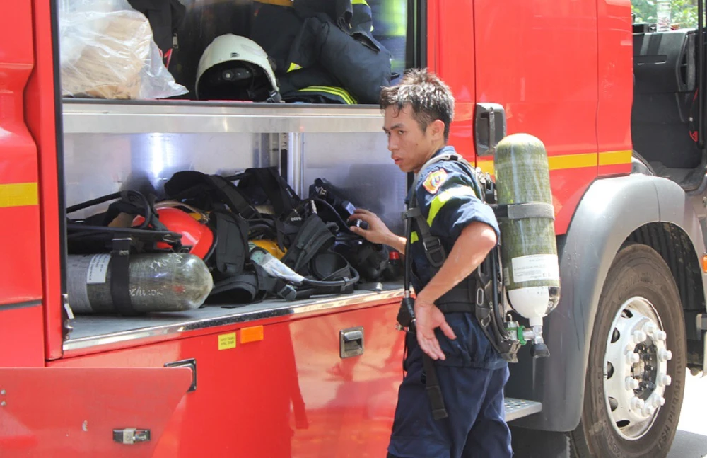 Cảnh sát chữa cháy có mặt tại hiện trường. Ảnh: Hải Hiếu.