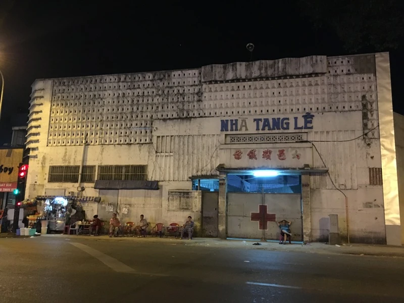 Gần 12 giờ đêm, nhà tang lễ An Bình (quận 5) đóng cửa. Con mèo nhỏ chui từ lỗ hổng bên cổng bước ra “meo meo” vài tiếng. Tiếng động khẽ trong đêm yên tĩnh cũng đủ làm những người yếu vía giật mình. Ông cụ ngồi trầm ngâm bên quán cà phê cóc quen thuộc. Thói quen thức đêm đã đành mà hôm nay ông cũng không ngủ được.