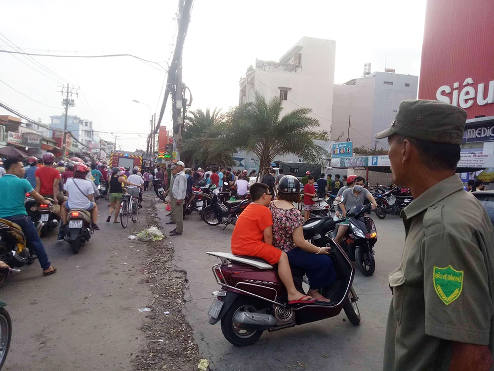 Cảnh sát PCCC quận Gò Vấp điều động năm xe cùng hàng chục cán bộ chiến sĩ đến hiện trường khống chế hỏa hoạn trong ít phút. Xe của cảnh sát gặp không ít khó khăn khi tiếp cận vào gần chung cư vì vướng nhiều hạng mục xây dựng.