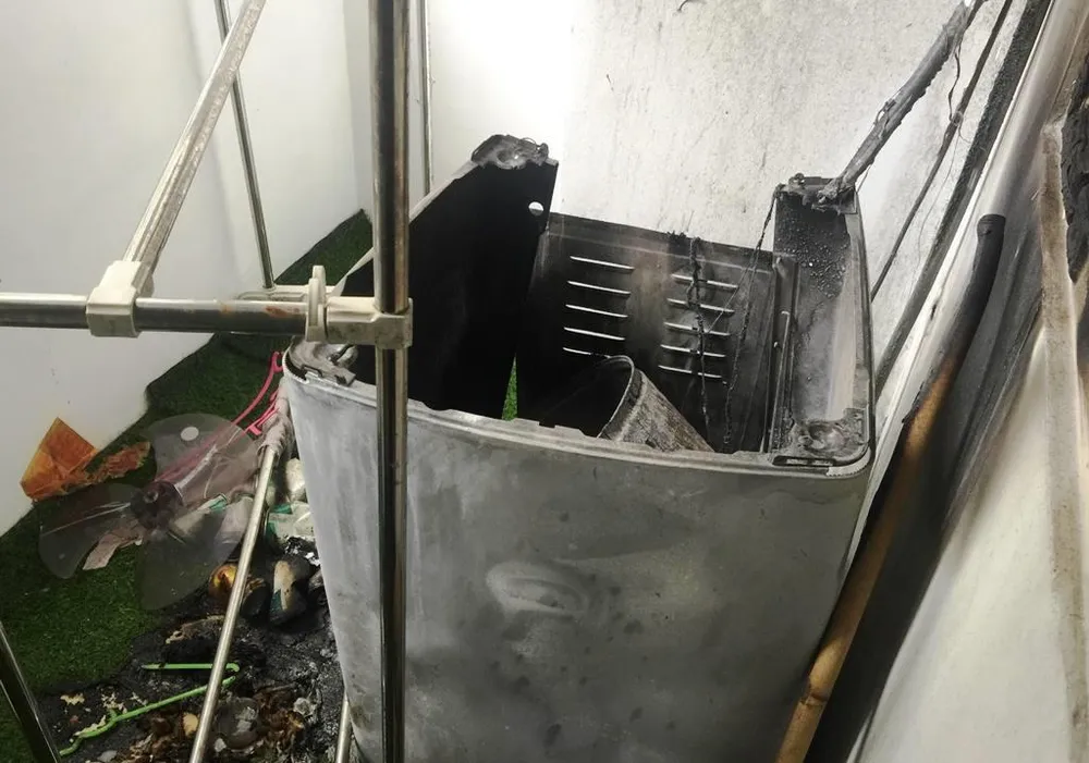 Đám cháy không gây thiệt hại về người song đã đã thiêu rụi hoàn toàn máy giặt, cháy sém cục nóng điều hòa, dây điện...
