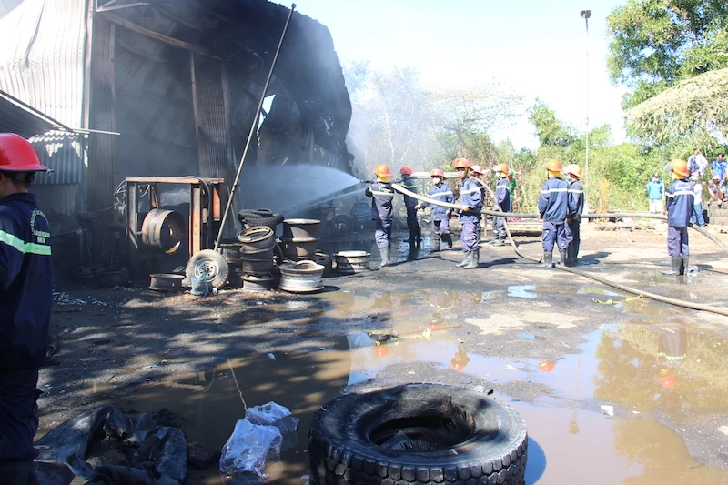 Đến khoảng 14 giờ cùng ngày, ngọn lửa cơ bản được khống chế. Tuy nhiên, nhiều vật dụng bên trong cơ sở lốp ô tô bị thiêu rụi.