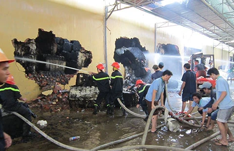 Phải tới khi lực lượng chữa cháy chuyên nghiệp huyện và tỉnh huy động bốn xe chữa cháy và gần 100 cán bộ, chiến sĩ có mặt tại hiện trường tích cực dập lửa thì tình hình mới có chuyển biến. Sau bốn giờ đồng hồ, đám cháy đã cơ bản được khống chế. Thiệt hại bước đầu ước tính hàng chục tỉ đồng.