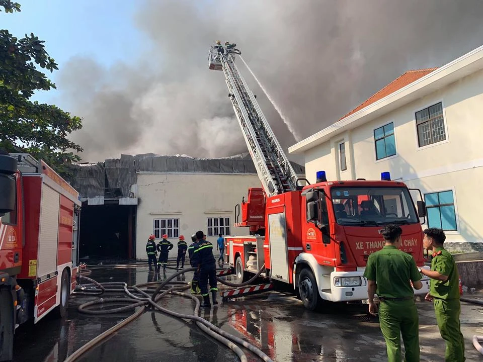 Nhận được tin báo, lực lượng PCCC tỉnh Bình Dương đã phải huy động hơn 10 xe chữa cháy cùng hàng chục cán bộ, chiến sĩ để dập lửa. Vụ cháy lớn, xe thang cũng phải huy động đến hiện trường để dập lửa từ trên cao.