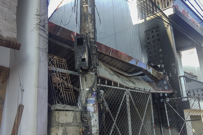 Người dân cho rằng lửa bắt nguồn từ cột điện bốc cháy. Ảnh: N.DO
