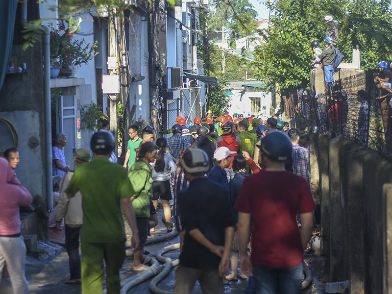 "Vì có một căn nhà kho đựng hộp xốp nên đám cháy càng dữ dội. Mùi khói do những hộp xốp cháy khiến người dân khó tiếp cận dập lửa" - ông Ngô Phước Hiền (ở đường Ngự Bình) nói.