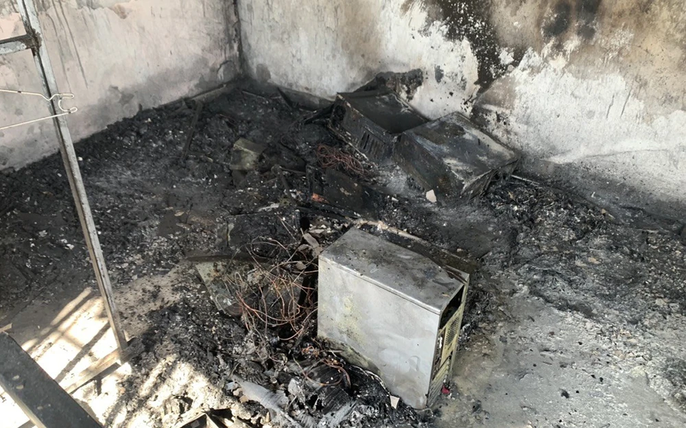 Một số máy tính bên trong cửa hàng bị thiêu rụi. Ảnh: H.HÀ