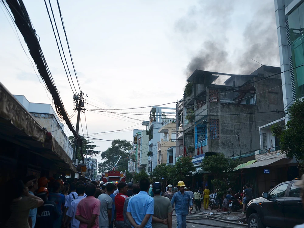 Thông tin ban đầu, vào khoảng 17 giờ 30 ngày 24-10, người dân phát hiện lửa, khói bốc ra từ tầng ba của căn nhà chuyên kinh doanh bình ắcquy, phụ tùng xe máy trên đường Phạm Hữu Chí (phường 12, quận 5, TP.HCM) nên hô hoán thông báo dập lửa.