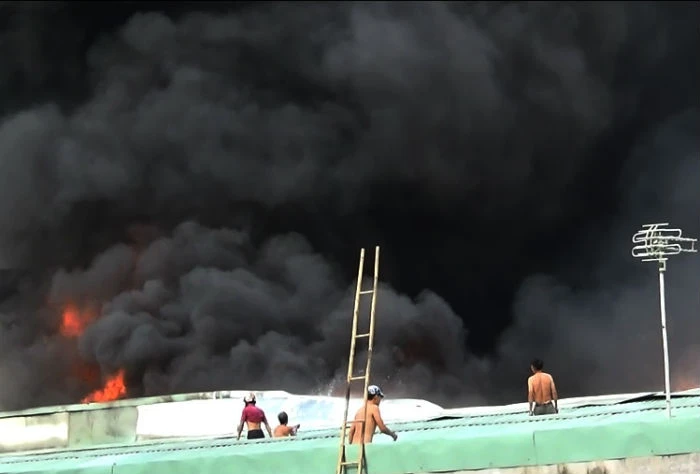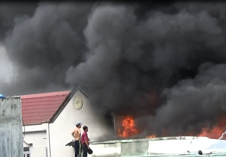 Lửa nhanh chóng bốc lên bao trùm hàng ngàn mét vuông công ty.