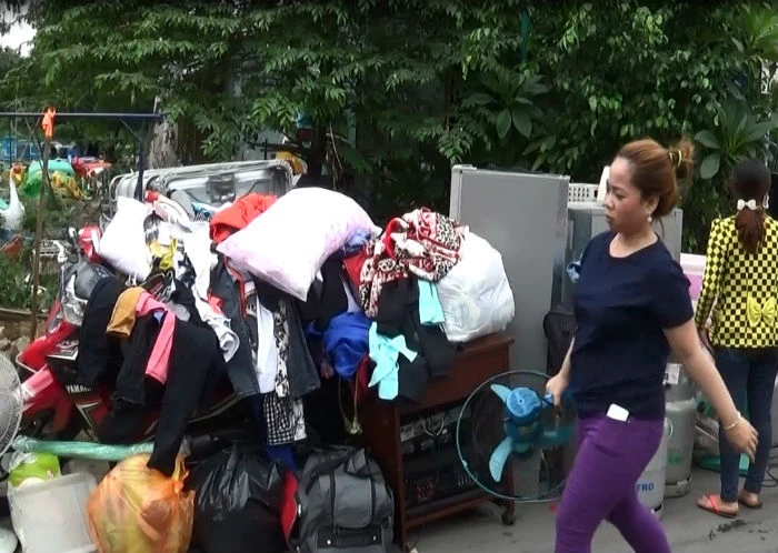 Người dân kinh hãi nháo nhào thu tài sản trong nhà, các phòng trọ ra bên ngoài.