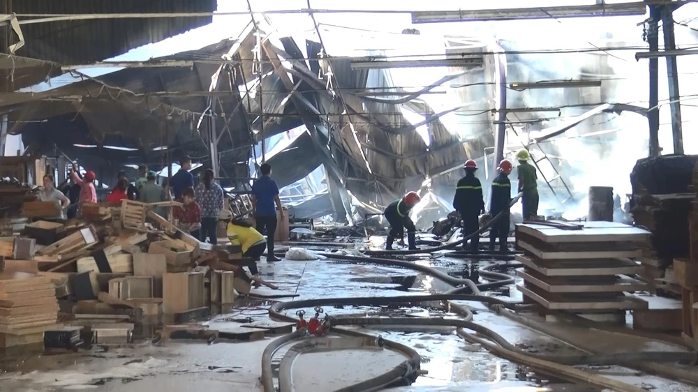 Sau khoảng hơn 1 giờ đám cháy được dập tắt, toàn bộ xưởng phun sơn của công bị cháy trụi và đổ sập.