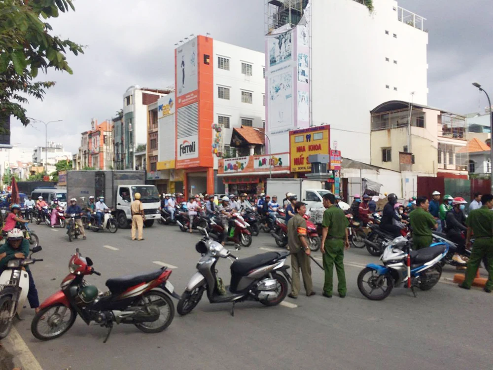 Hiện trường được lực lượng chức năng phong tỏa hoàn toàn; giao thông ùn ứ nghiêm trọng. Ảnh: H.TÂM