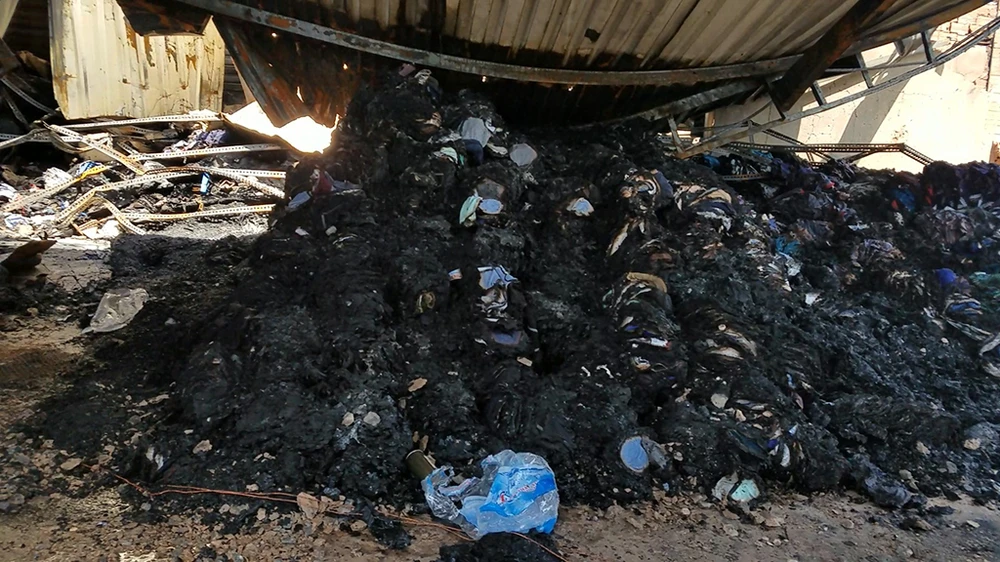 Đám cháy bùng lên từ kho quần áo ở Bình Chánh đêm mùng 3 tết. Ảnh: HT