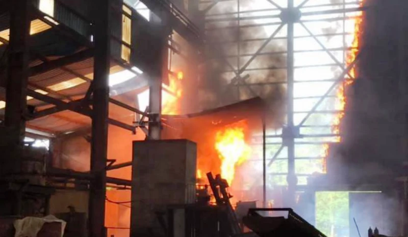 Tuy nhiên, do thời tiết nóng, lò luyện vốn có nhiệt cao, nhiều vật liệu dễ cháy nên lửa, khói đã bốc lên nghi ngút.