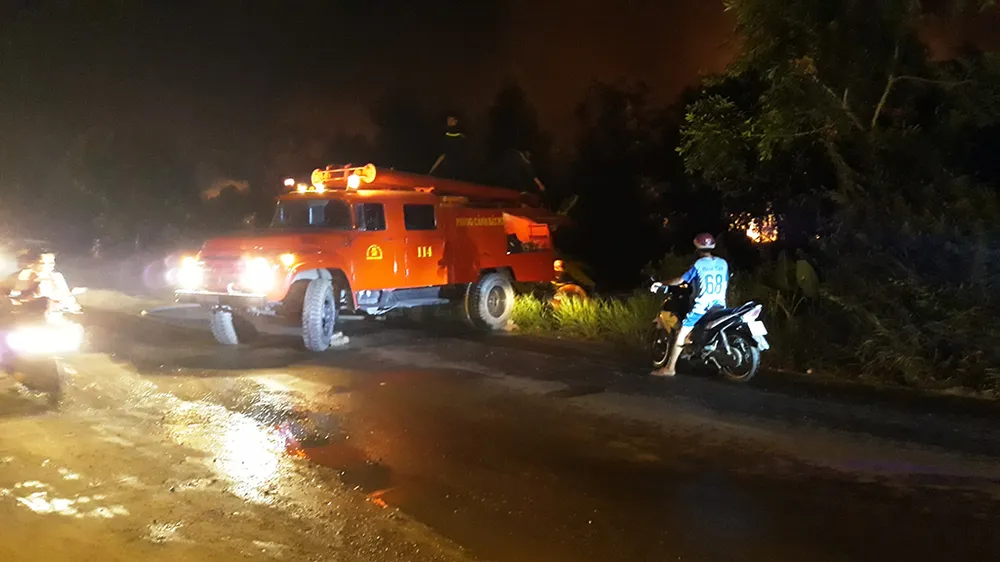Lực lượng tại chỗ huy động bình bơm hút nước dập lửa nhưng do gió mạnh, tiết trời khô nóng nên đám cháy lan ra một cách chóng mặt.