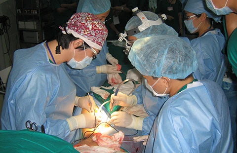 Các y, bác sĩ đang ghép tạng cho một bệnh nhân. Ảnh: D.TÍNH