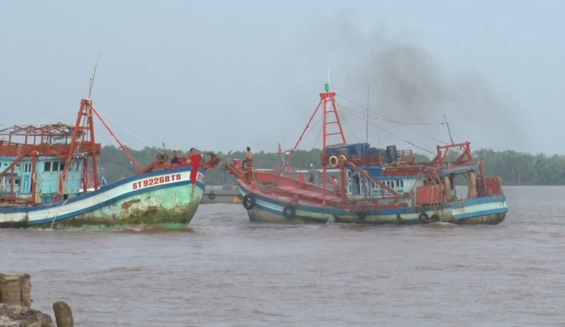 tàu vào trú bão ở bến Giá, huyện Trần Đề