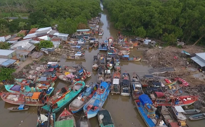 Tàu đang vào nơi trú ẩn ở huyện Trần Đề